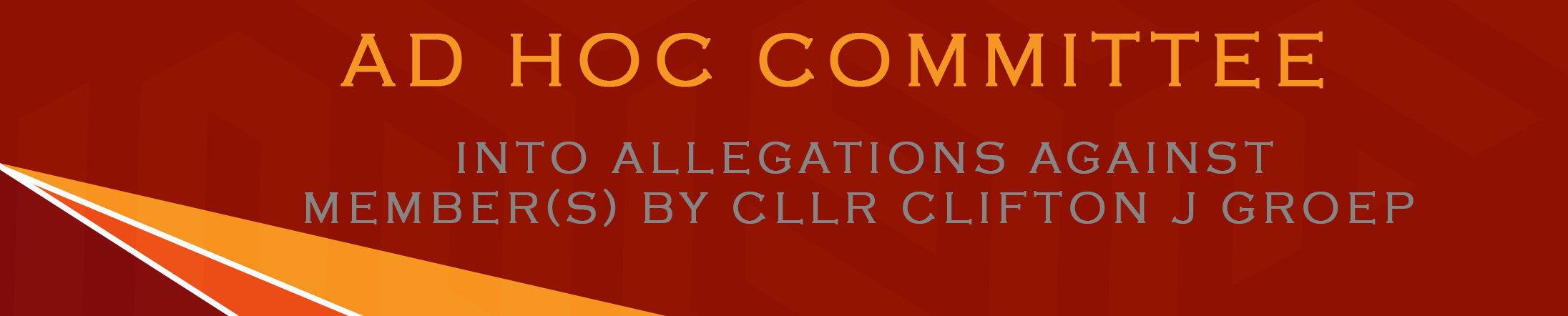 NORTH WEST PROVINCIAL LEGISLATURE ESTABLISHES AD HOC COMMITTEE TO INVESTIGATE ALLEGATIONS AGAINST MEMBER(S) BY CLLR CLIFTON J GROEP